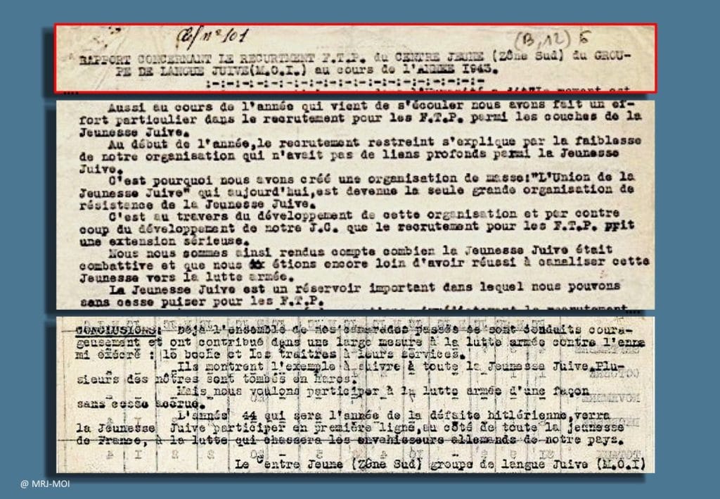 Rapport FTP-M.O.I. (zone sud) sur le développement de la lutte armée : création de l’Union de la Jeunesse Juive (UJJ) comme organisation de masse et vivier de recrutement (fin 1943).