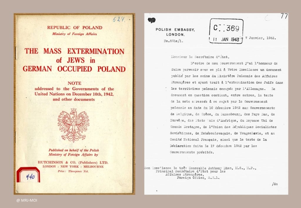 Note du 10 déc.1942 du gouvernement polonais décrivant la réalité des « massacres de masse des Juifs en Pologne occupée », transmise aux gouvernements alliés.