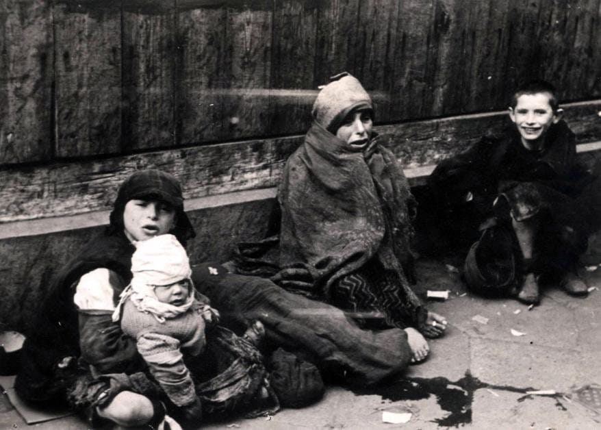 Enfants affamés dans le ghetto de Varsovie (fin 1942).
