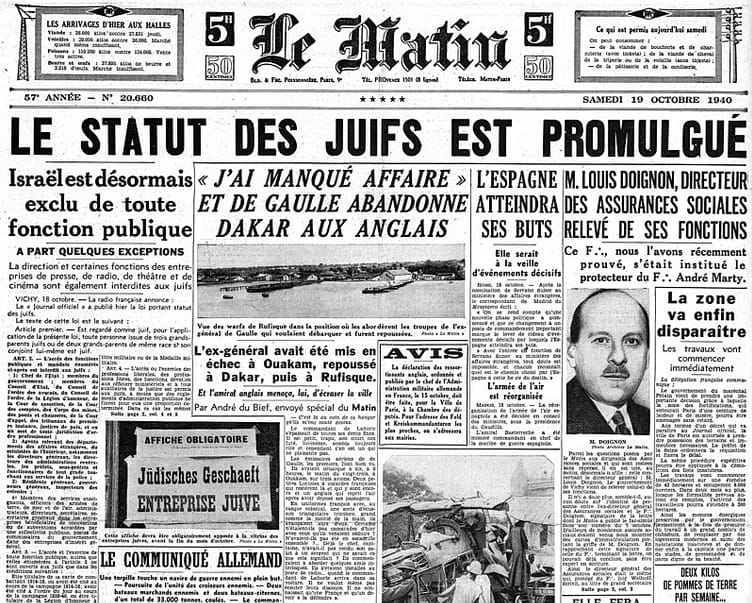 du 19 octobre rend compte du statut des Juifs.