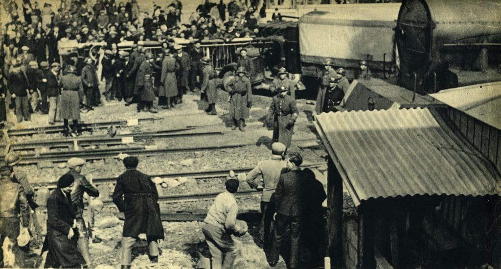 Le 10 mars 1943 en gare de Romans, des manifestants font dérailler un train de requis pour le Service du travail obligatoire (STO) et retardent le convoi.