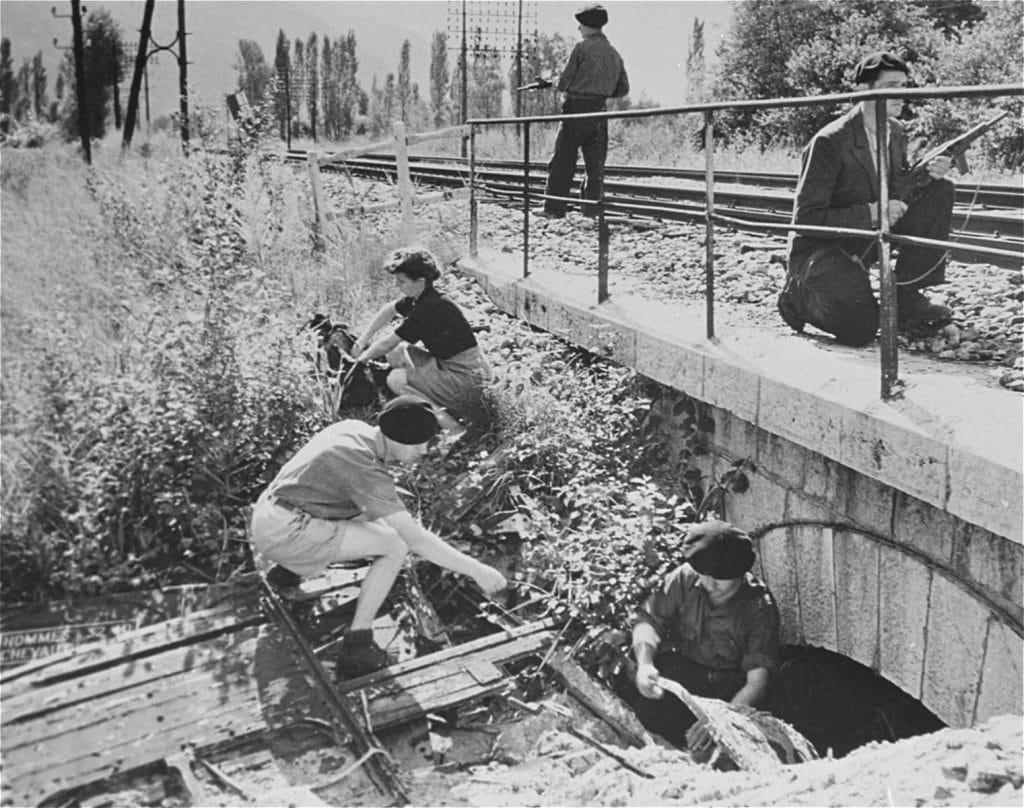 Maquisards du maquis de Voreppe (Isère) préparant un sabotage ferroviaire (1944).