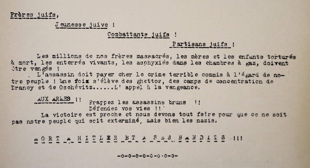 L’UJRE appelle à venger les millions de juifs massacrés et à prendre les armes (extrait).