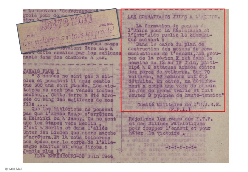 Appel de l’UJRE à rejoindre les rangs des Forces Françaises de l’Intérieur pour la Libération de la France.