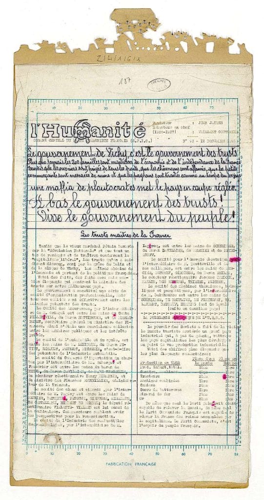 , périodique communiste clandestin, dénonce les partisans de l’Allemagne qualifiés de traîtres (février-mars 1941).