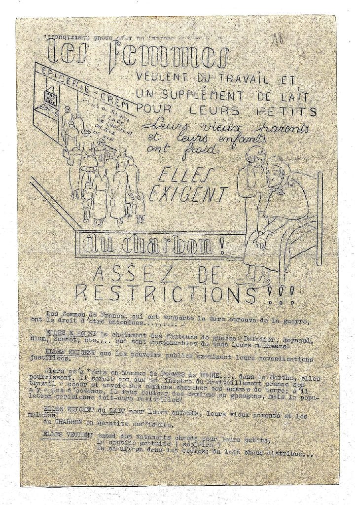 Papillons – à découper et à apposer dans les rues ou les boîtes à lettres – du Comité populaire féminin (organisation communiste clandestine) – 15 février 1941.
