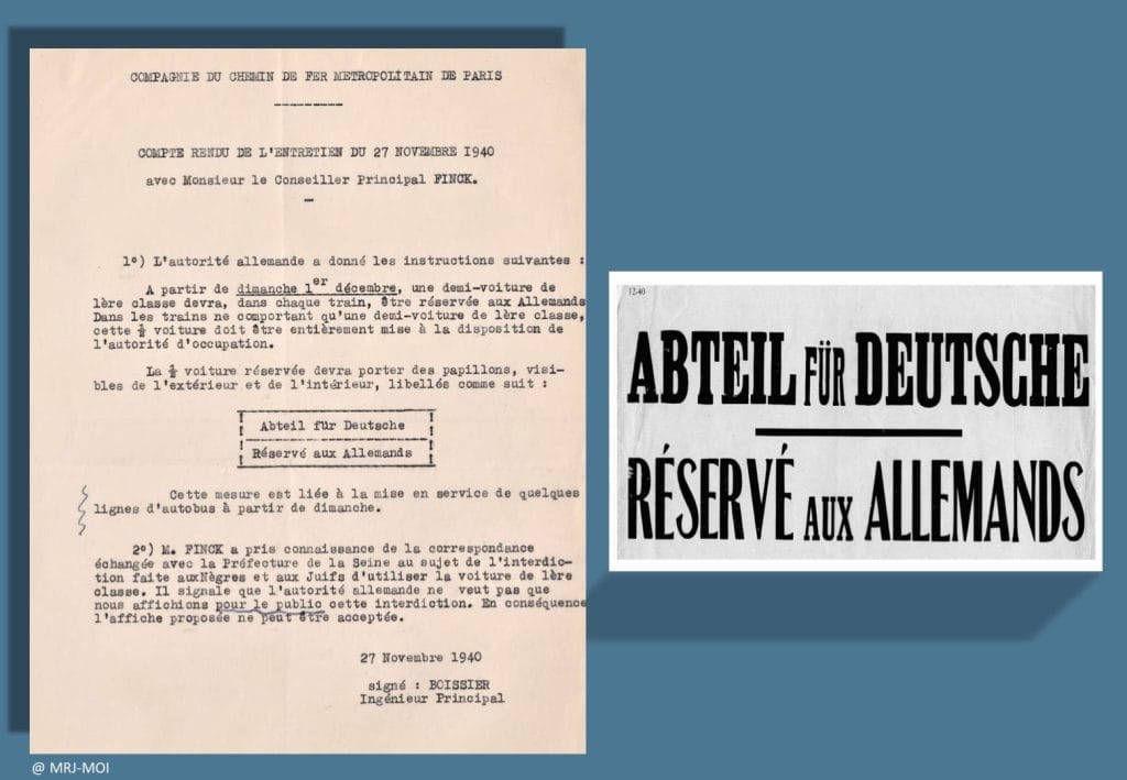 Affichette « réservé aux Allemands » à apposer sur les wagons de première classe du métro à partir du 27 oct. 1940.